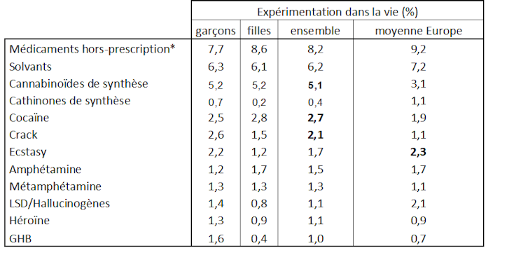 Aujourd’hui, les jeunes Français expérimentent plus que les autres Européens la cocaïne (2,7 % contre 1,9 %) et le crack (2,1 % contre 1 %), mais moins le MDMA (1,7 % contre 2,3 %). Et les Baltes (Estonie et Lettonie) sont en tête pour le MDMA, le LSD et les autres hallucinogènes (5,0 %).